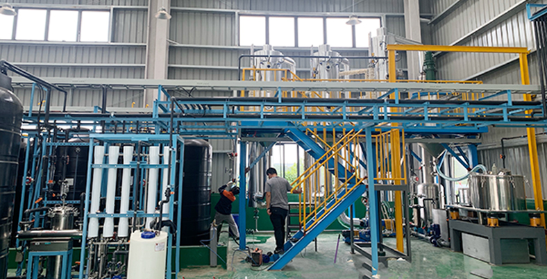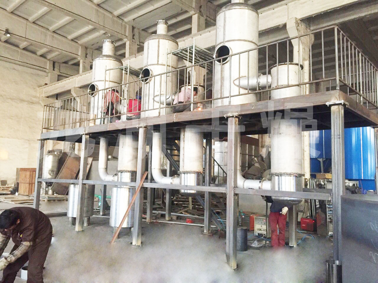 張家港某公司金屬清洗廢水使用現場,蒸發(fā)量每小時200kg,雙效蒸發(fā)器,配備電加熱蒸汽發(fā)生器